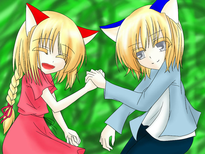 ユーミャ:にゃはっ♪ ユーミャとカールは 珠玖伽お姉ちゃんの背後さんが描いたいらすと